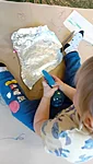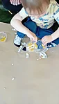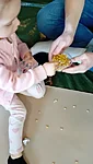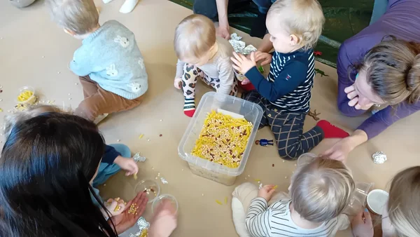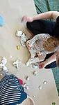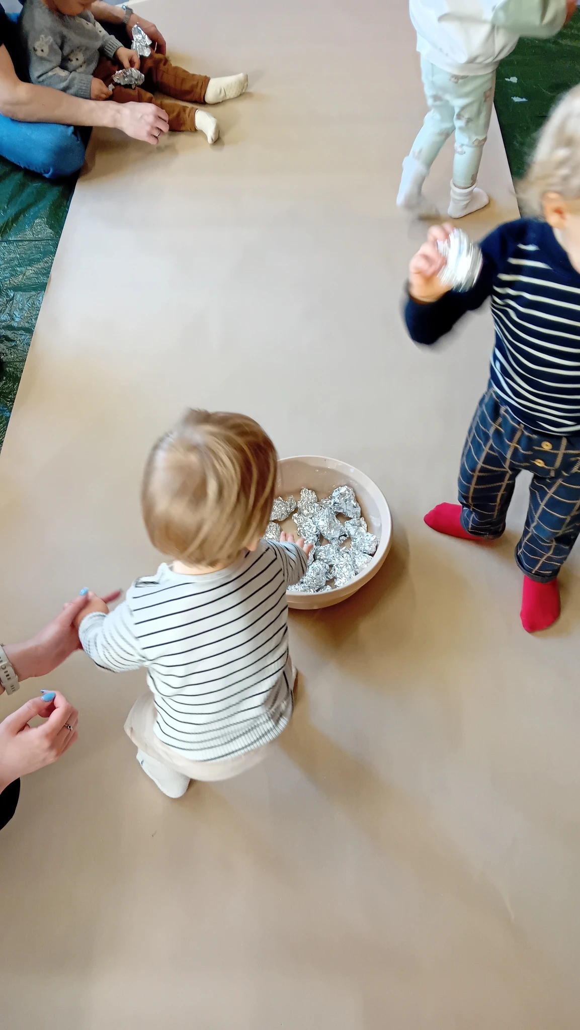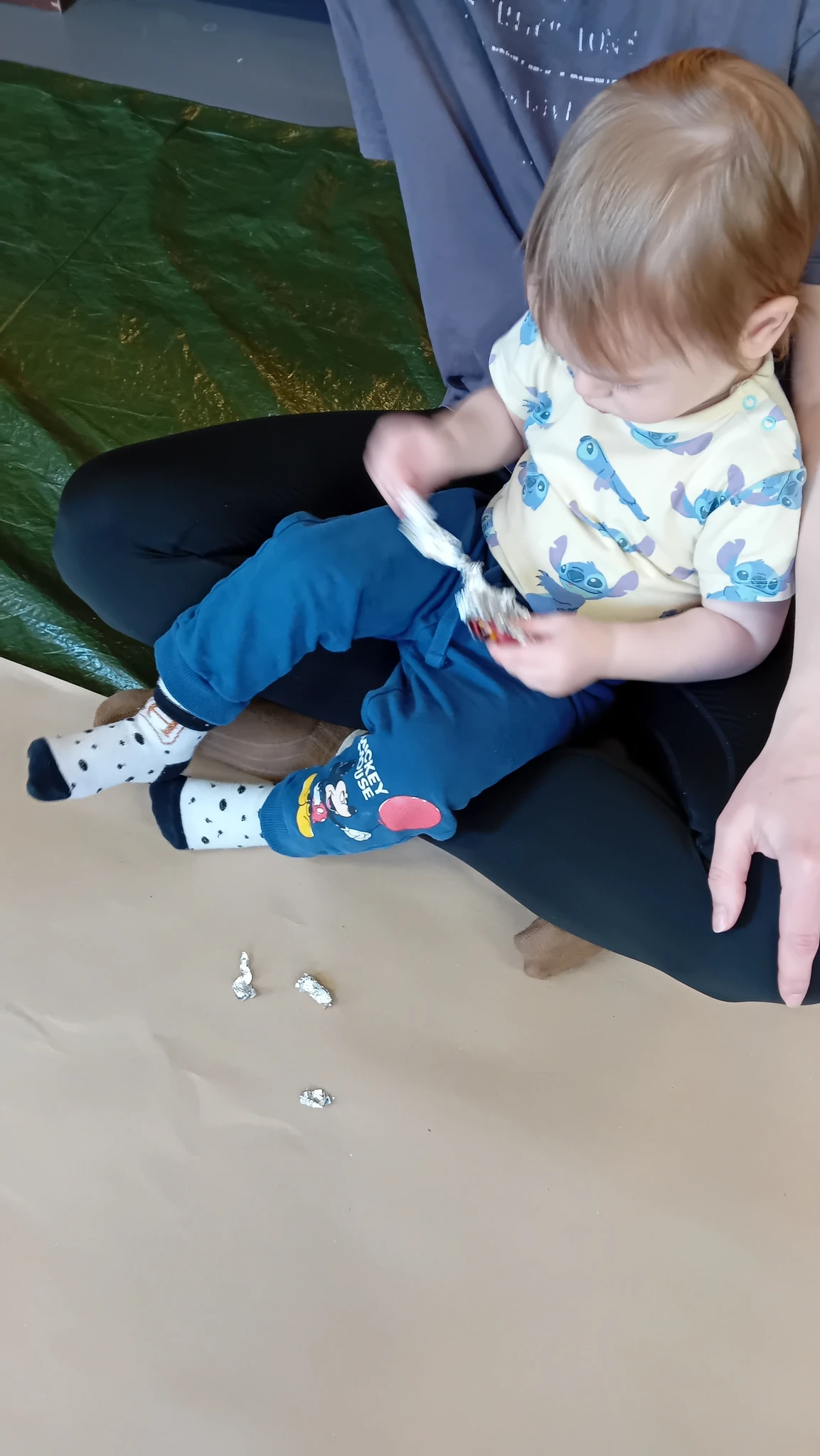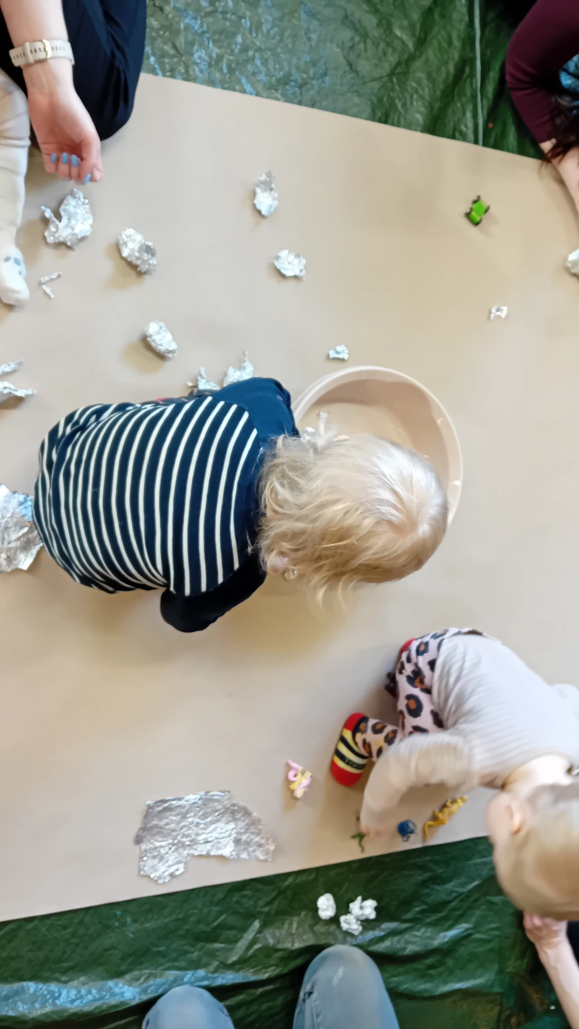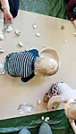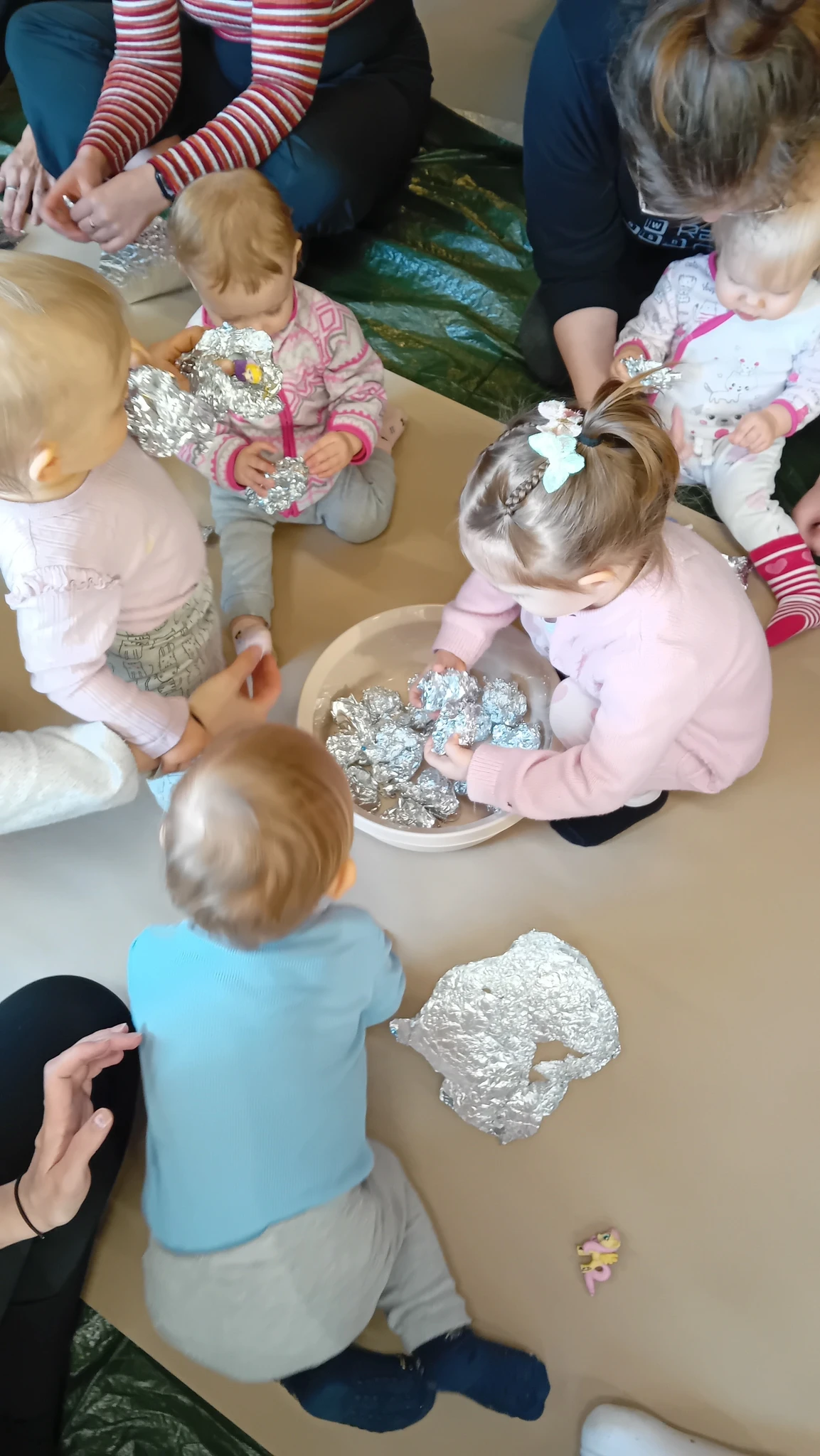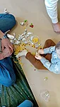 Meie alustasime harutamisest. Harutasime fooliumi seest lahti suure hulga erinevaid figuure, vaatasime ja sättisime neid pikkuse ja värvide järgi hulkadesse. Seejärel sorteerisime ubade ja herneste hulgast välja makarone ja pakkisime neid fooliumisse, see oli päris keeruline töö.