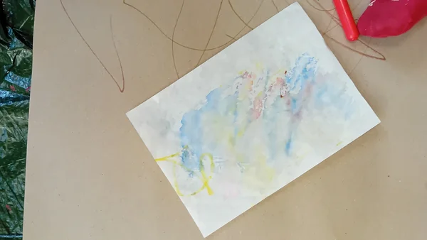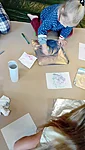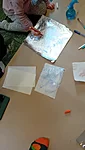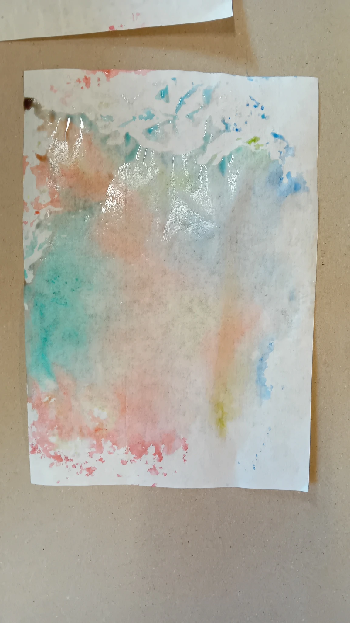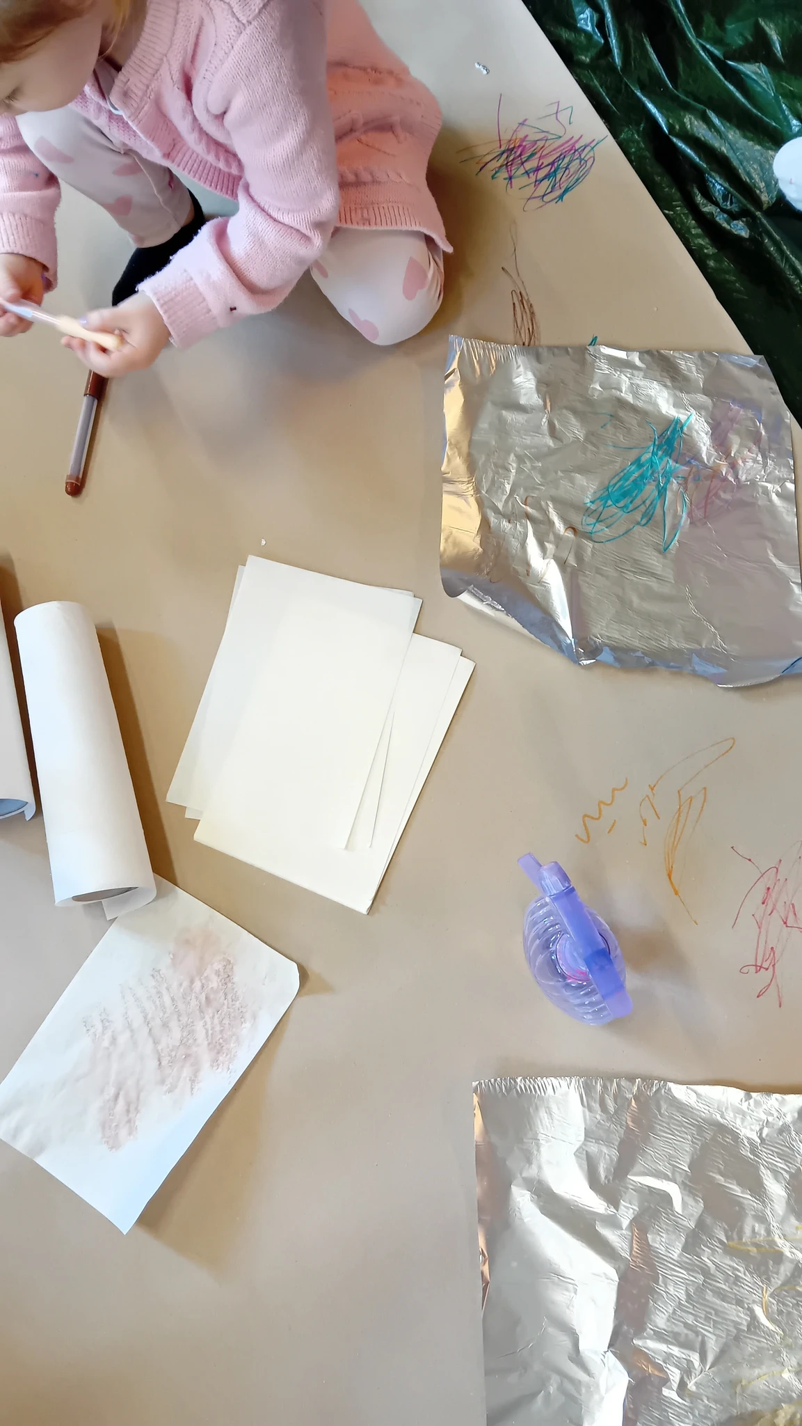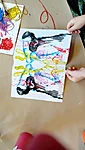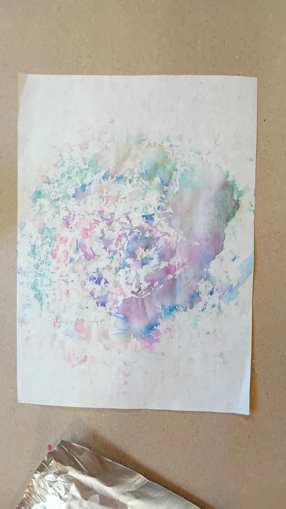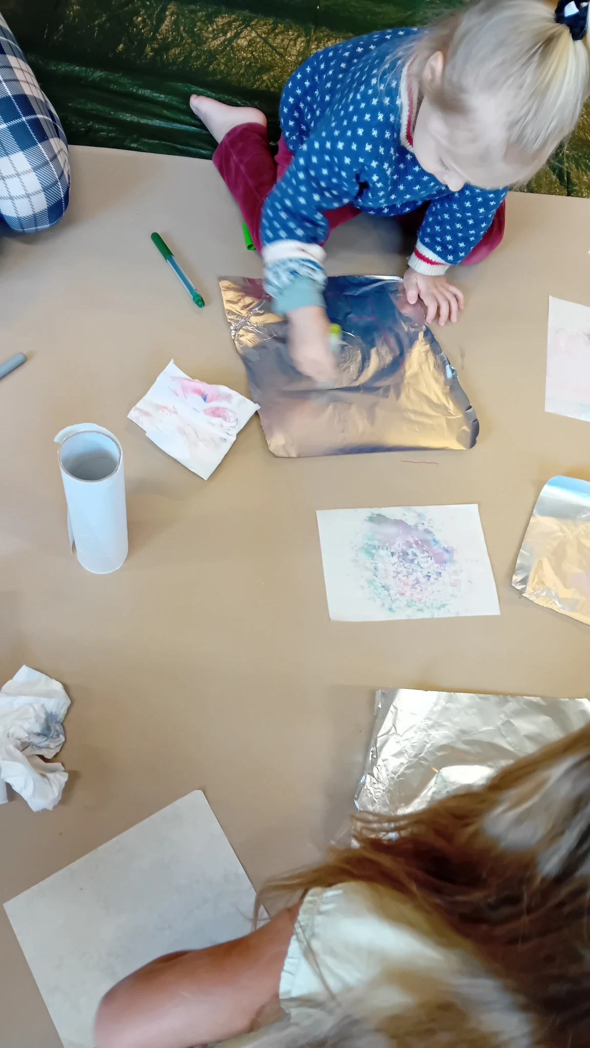 Lõpuks püüdsime fooliumi peale vildikatega joonistada ja seejärel pritsisime pildi märjaks ning "trükkisime" paberile. See oli vähemasti sama põnev kui üllatusmuna avamine!