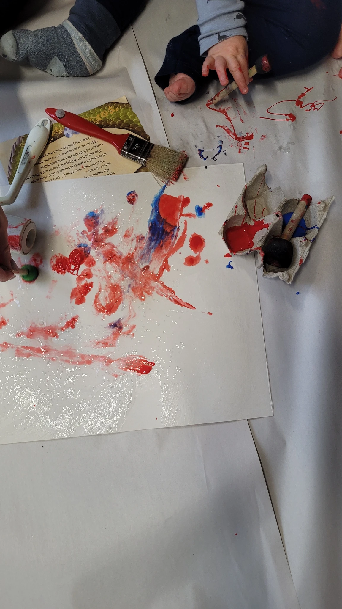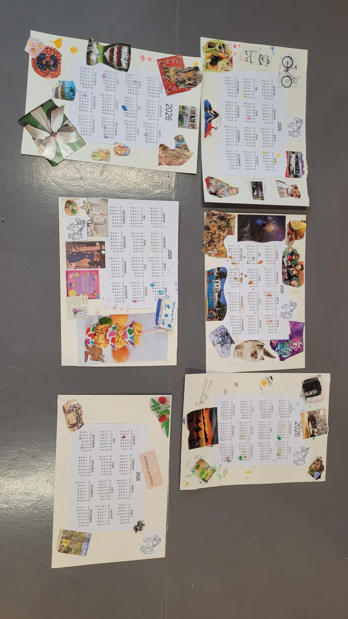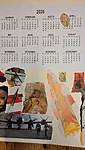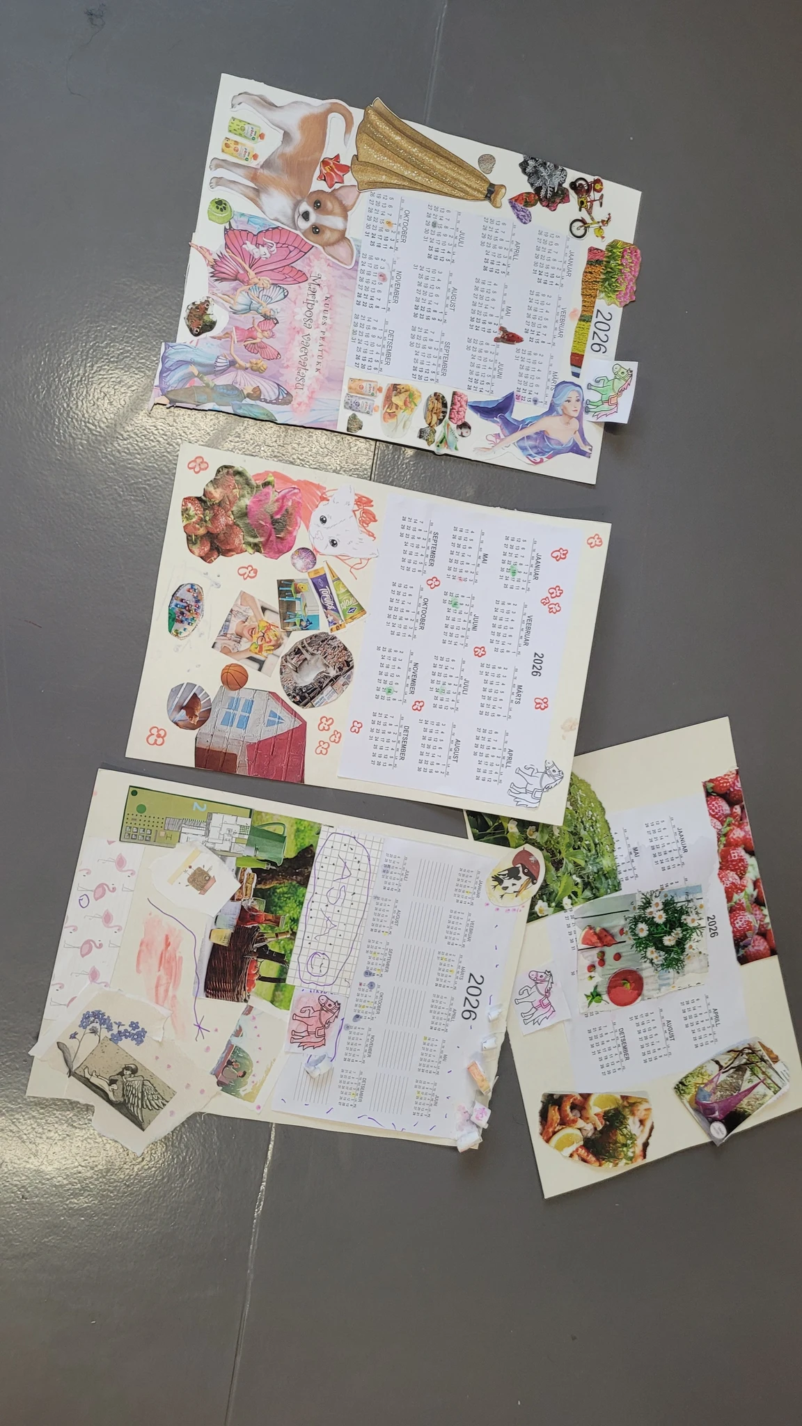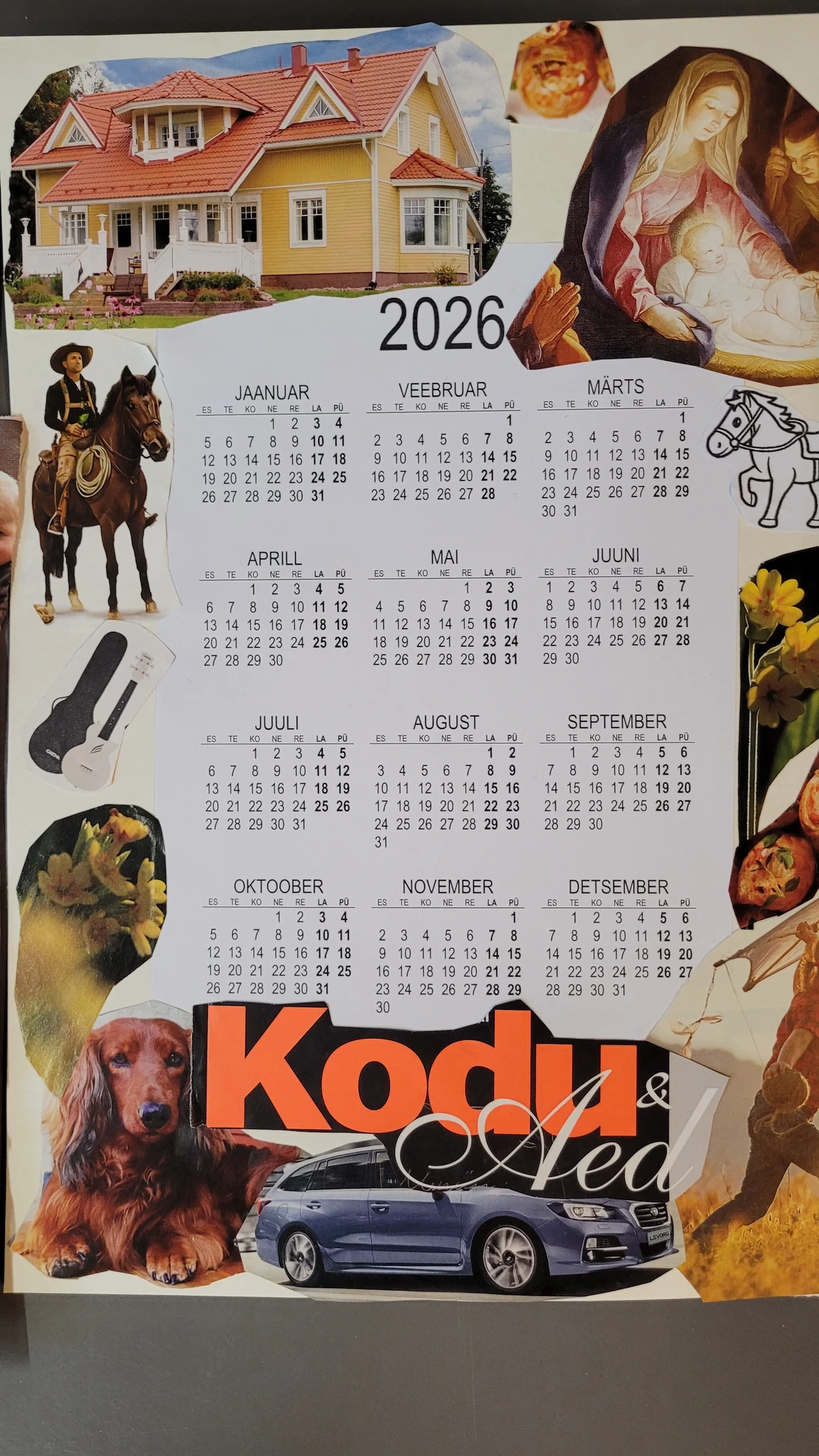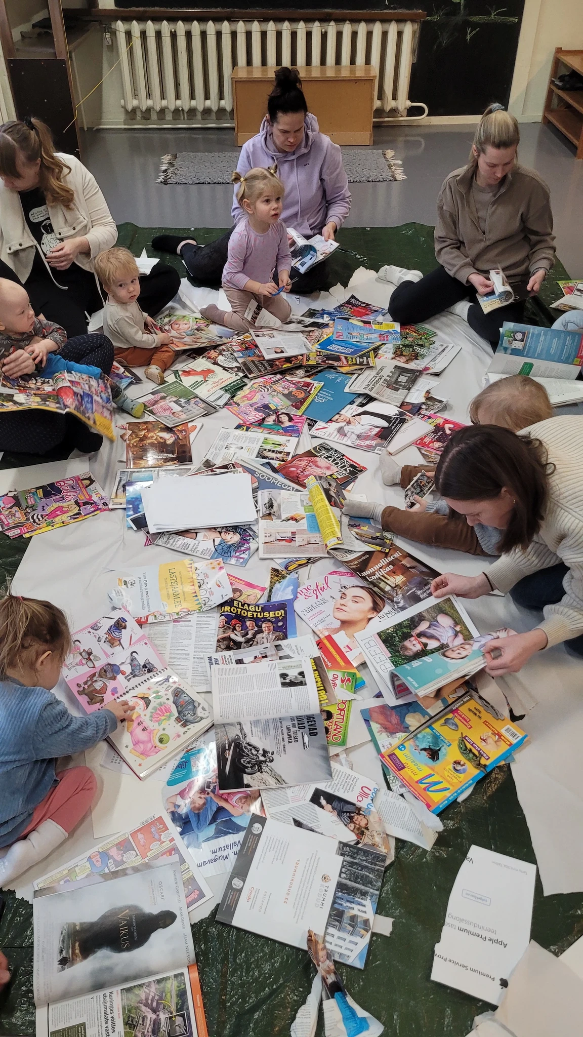 Asetasime meisterdamise pinnale suure kuhja vanasid ajakirju ja asusime koos pilte otsima, mis meile meeldivad ning mis aitaks visualiseerida meie uue aasta soove. Rebisime ja lõikasime. Lehitsesime ja lappasime. Lõpuks oli meil olemas pundar unistusi ja soove. Võtsime suure A3 paberi ja liimisime sinna peale kõigepealt kõik 2026 aasta kalendrikuud, siis liimisime vabaks jäänud kohtadele oma väljaotsitud pildid. Beebid kasutasid liimimiseks ohtralt kliistrit ja kaunistamiseks värvi, mida ajasid laiali käte, jalgade, rullide, pintslite ja svammidega.
