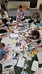 Siis saime väikesed vatitikud ja veidi akvarellvärvi. Sellega märkisime ära endale tähtsad kuupäevad, näiteks sünnipäevad. Ja täpitasime ka niisama. Mõned lapsed proovisid seda teha näputemplipatja kasutades.