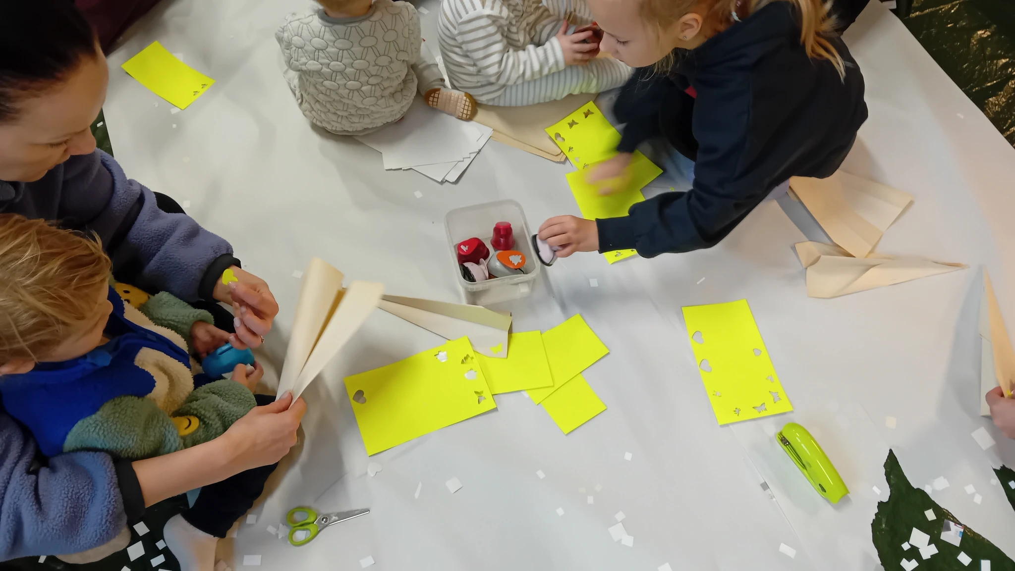 hoogu, kui lapsed loovad tasapinnalisest paberist kolmemõõtmelisi objekte.