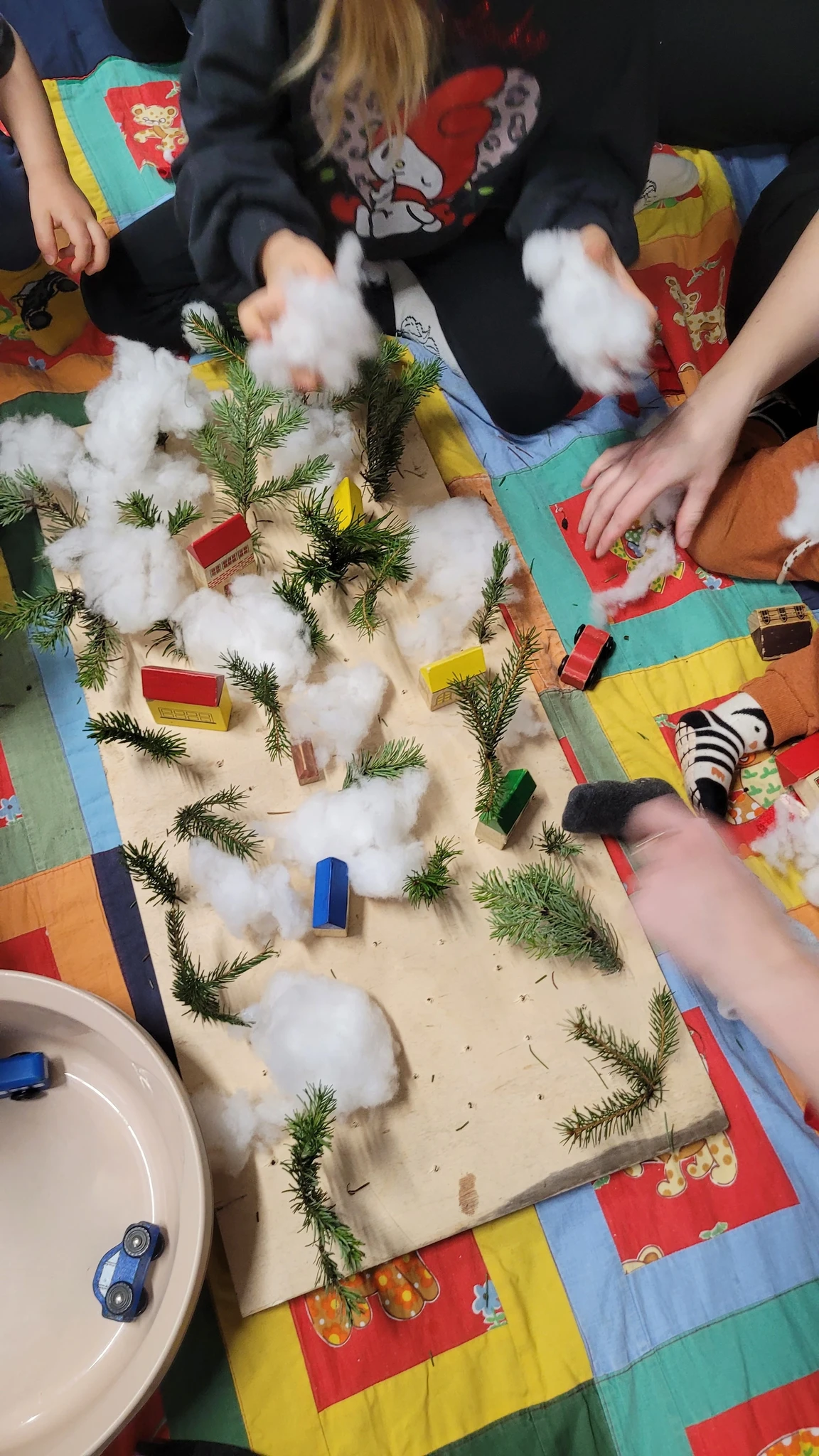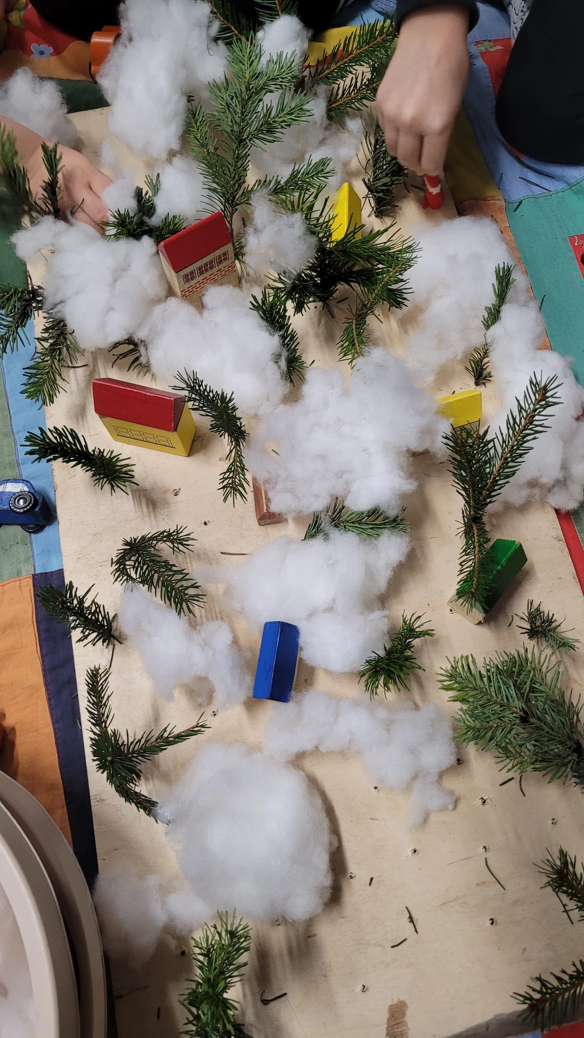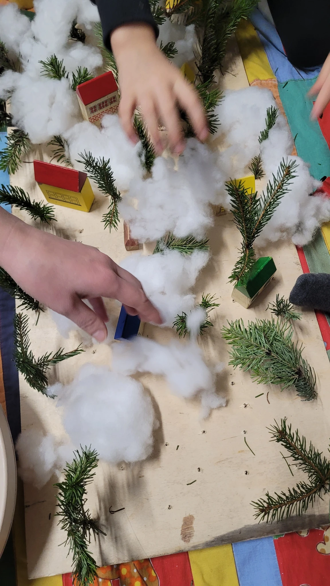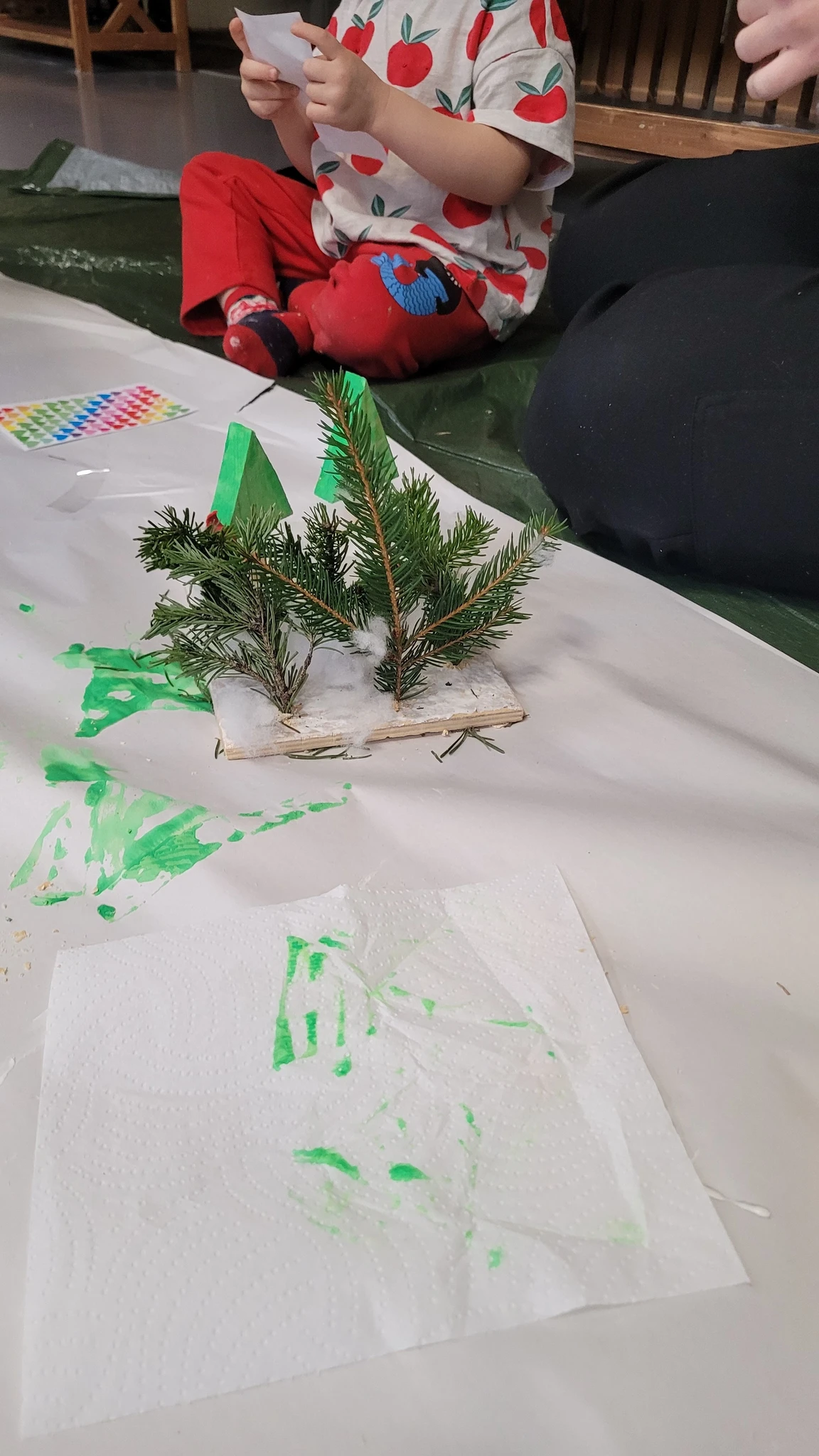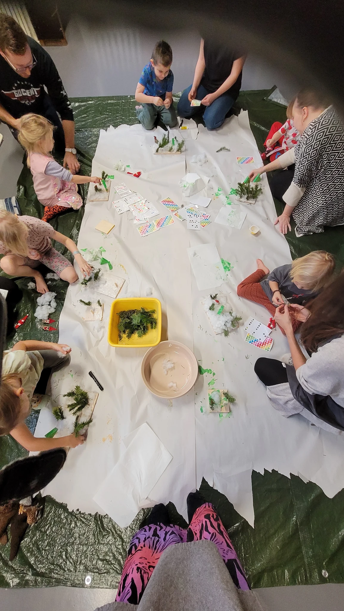 Päkapikud piiluvad juba pikemat aega aga alles nüüd on nende mütsitutid nähtaval ka Haldjaperes. Nimelt oli terve hord päkapikke ennast siia ära peitnud, kuid nutikad ja osavad lapsed leidsid kõik üles. Kogusime nad kokku ja tegime päkapikud sõrme otsas nendega ühe toreda päkapiku tantsu. Selleks et nad aga Haldjaperes niisama asutud ei oleks, mõtlesime neile kodud teha. Võtsime suure puidust plaadi ja asusime metsa istutama. Päkapikud ju elavad lumises metsas. Istutasimegi kuuseoksi puidu sisse puuritud aukudesse. Edasi lisasime lund ja lõpuks majakesi ja autosid. Saigi uhke päkapikuküla, kuhu kõik ära mahtusid.