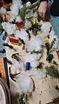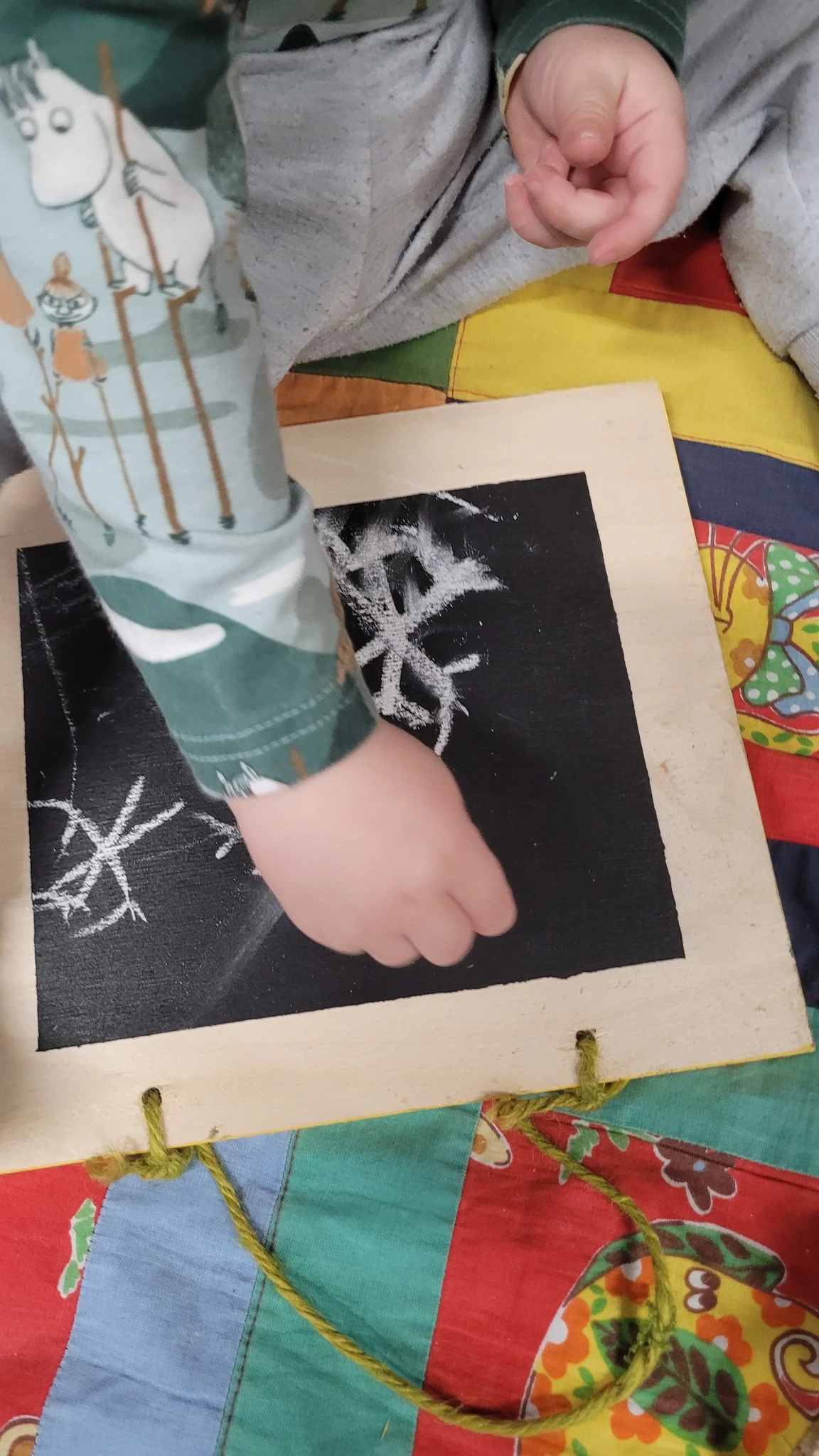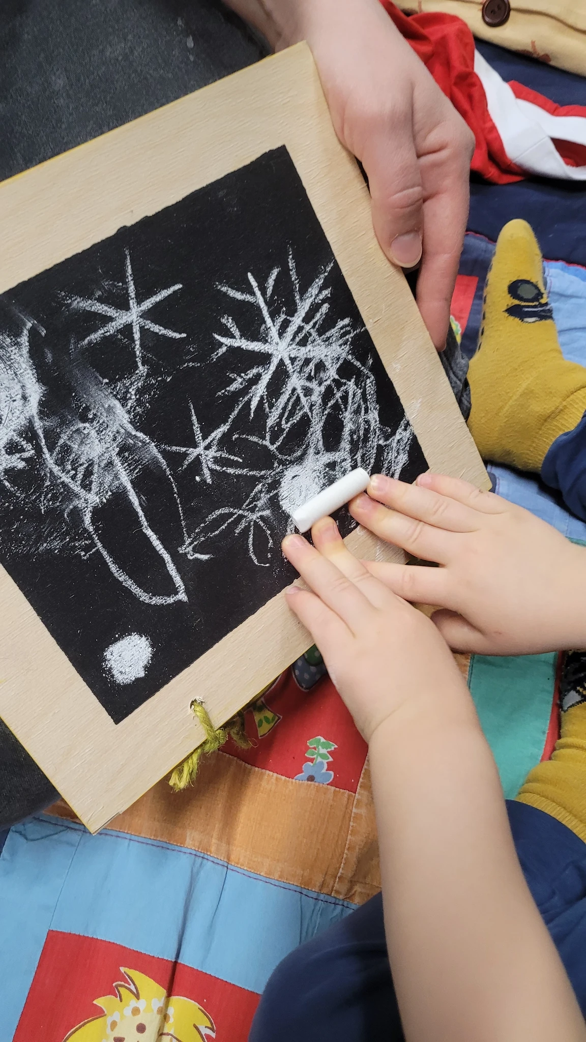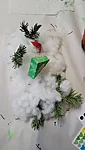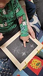 Siis nõidusime vahepeal natukene lund, et meie jõulud tuleks sama lumised kui meie ehitatud päkapikumaal. Võtsime väikesed tahvlid ja joonistasime kriitidega sinna lund. Kellel mõni helbeke, kellel lausa lumetuisk.