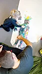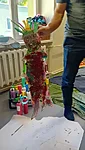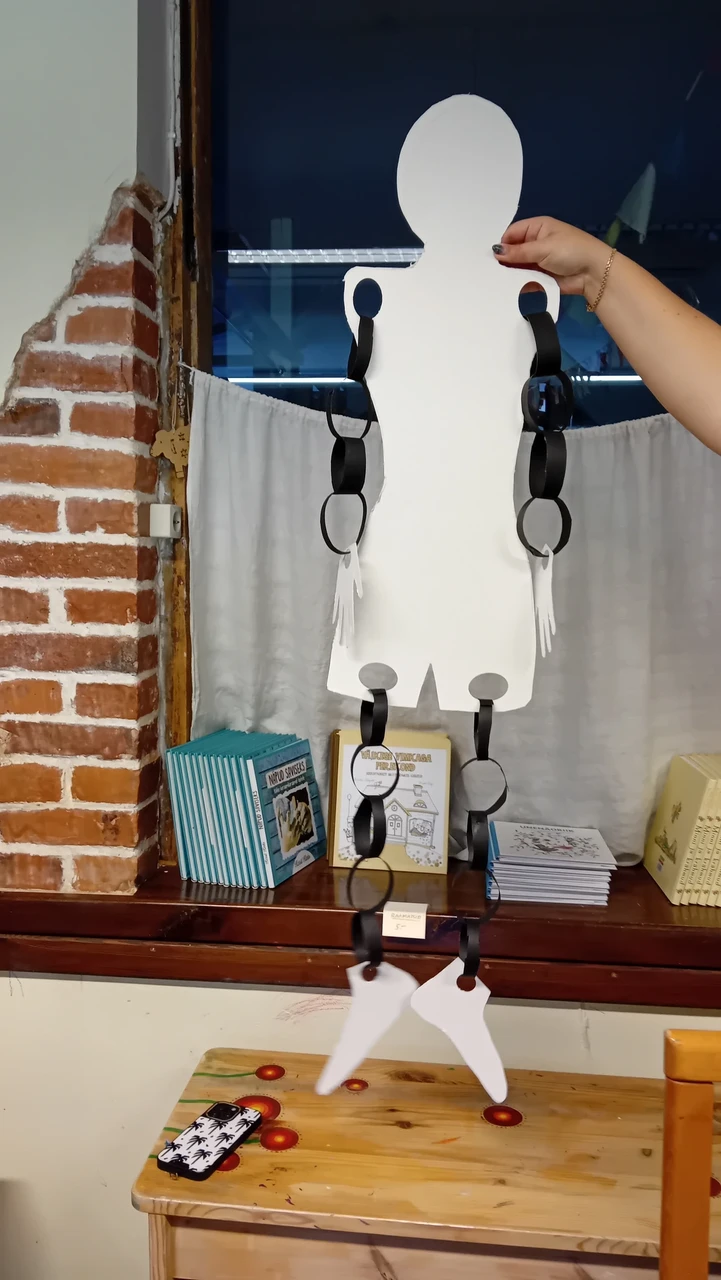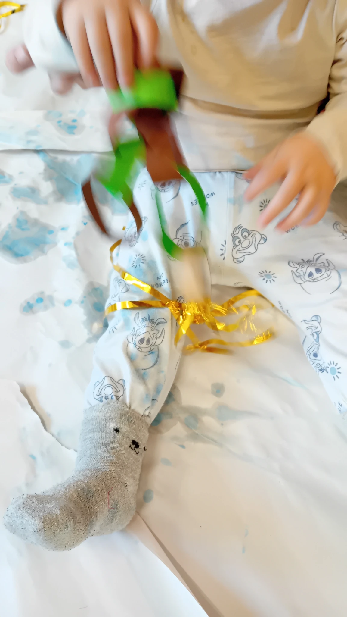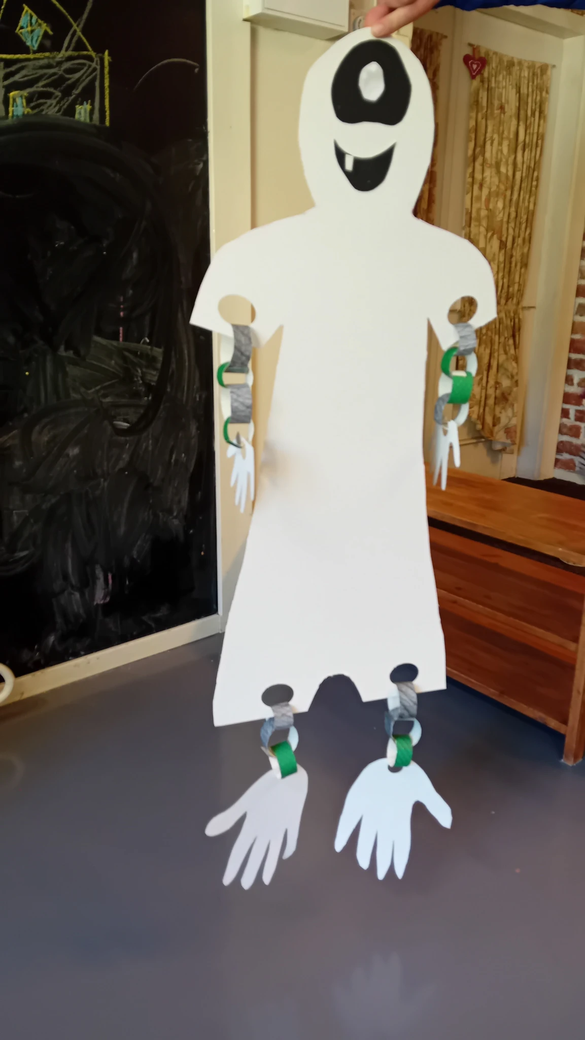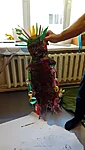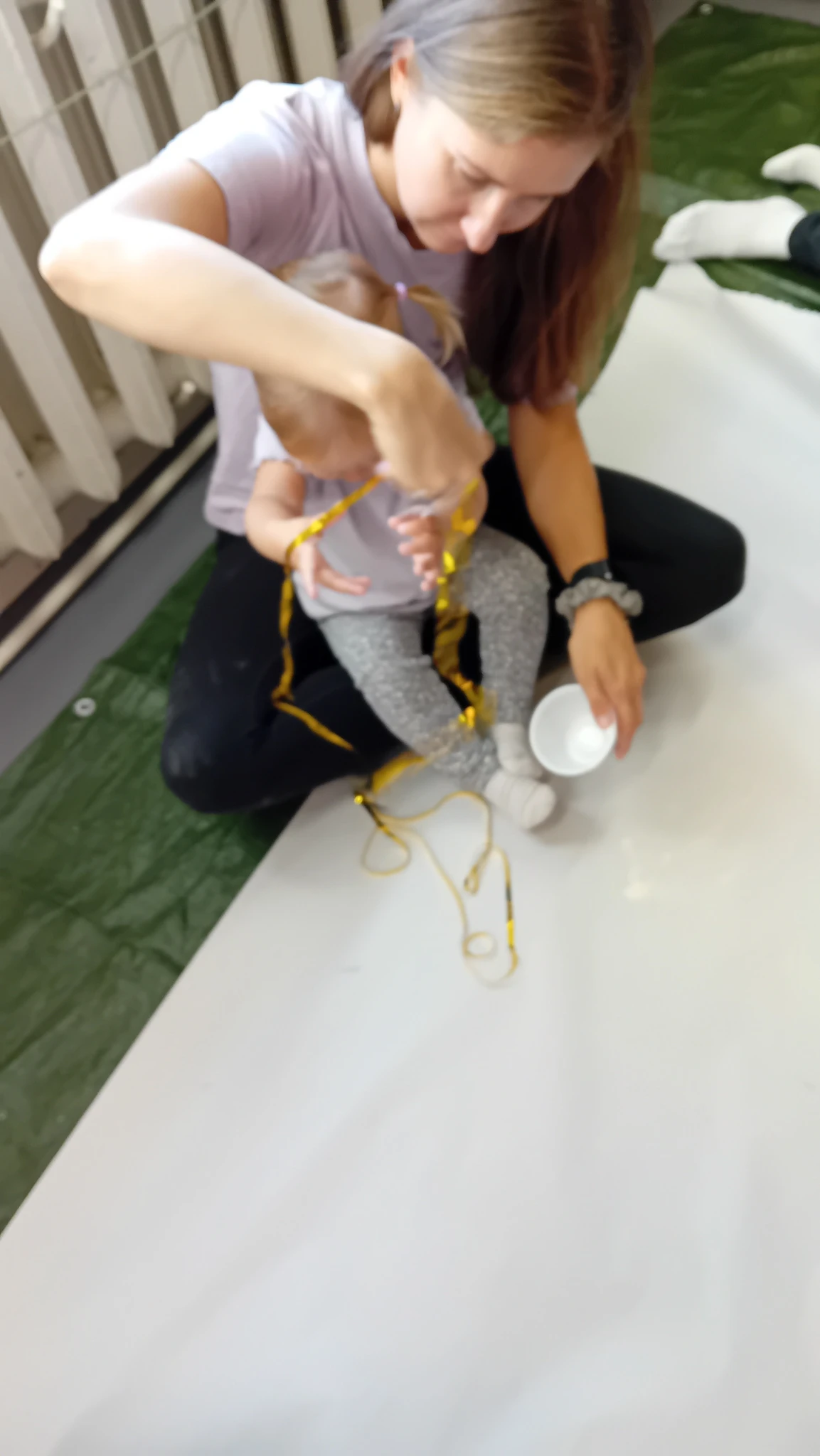 Suuremad lapsed meisterdasid ühe vahva tuulekolli. Ikka kõigepealt ise papile pikali ja saatja joonistas piirjooned maha. Seejärel sai keha välja lõigata ja sellele paberiribadest igavesti vahvad lehvivad käed ja jalad meisterdada. Ja kõige lõpuks sai oma uue sõbra ka ära disainida.